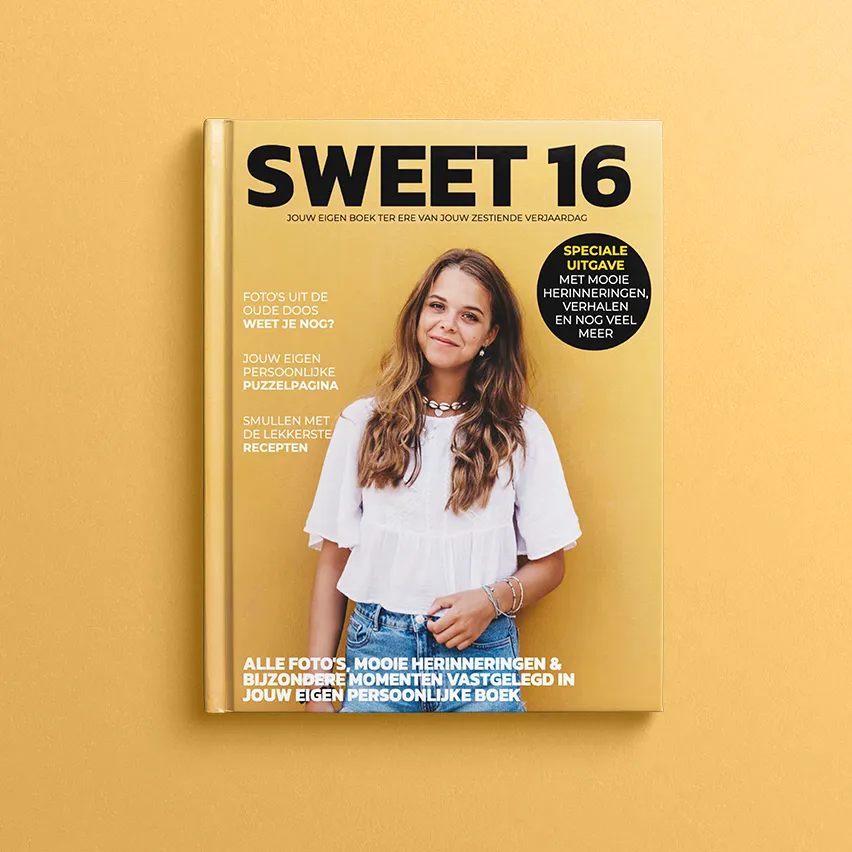 Op zoek naar een sweet 16 cadeau? Cliché maar waar, wat gaat de tijd snel! Deze speciale verjaardag leent zich perfect voor het creëren van een uniek sweet 16 cadeau. Maak zelf een sweet 16 boek en verras de jarige met een uniek geschenk!