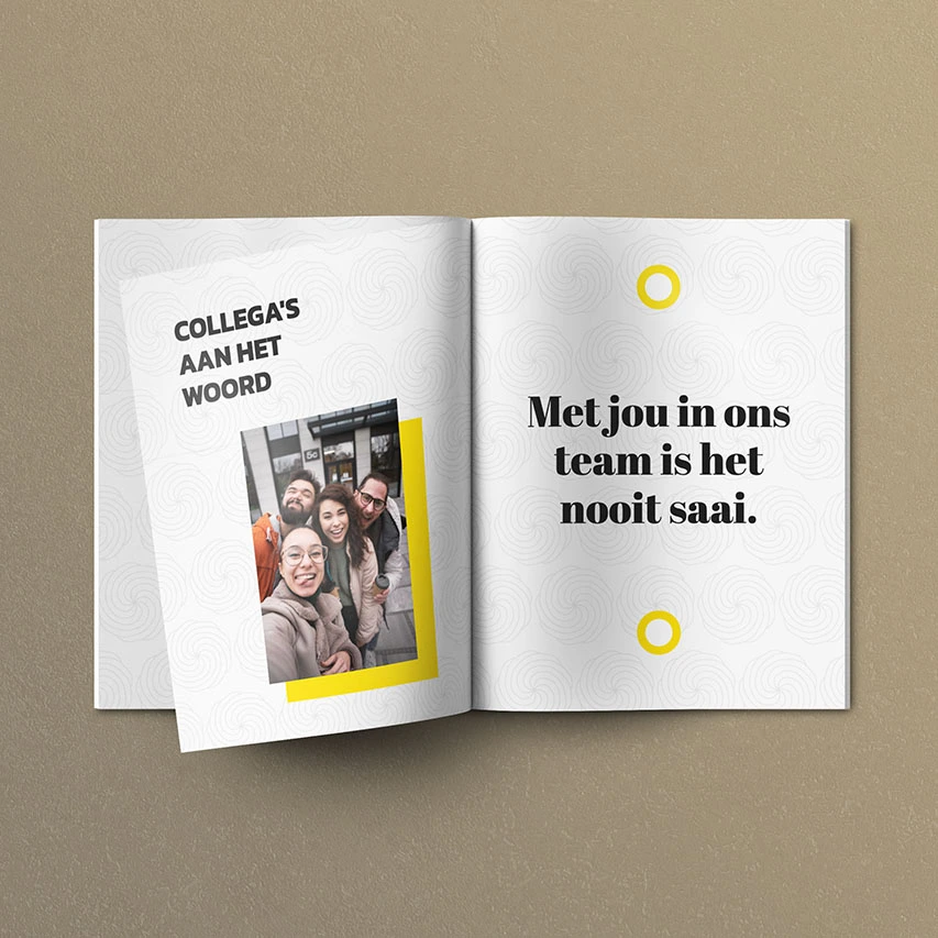Voordat je het fysieke tijdschrift ontvangt, kun je altijd een gratis online versie bekijken. Dit maakt het makkelijk om het ontwerp door te bladeren en te zien hoe het eruit zal komen te zien. Ook leuk om het te delen met andere collega’s die misschien ook in het complot zitten voor het jubileum cadeau voor je collega.