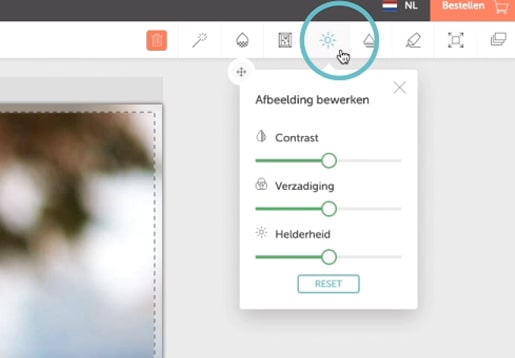 Door op de foto te klikken verschijnen er een aantal functionaliteiten bovenin je scherm waarmee je de foto kunt bewerken.